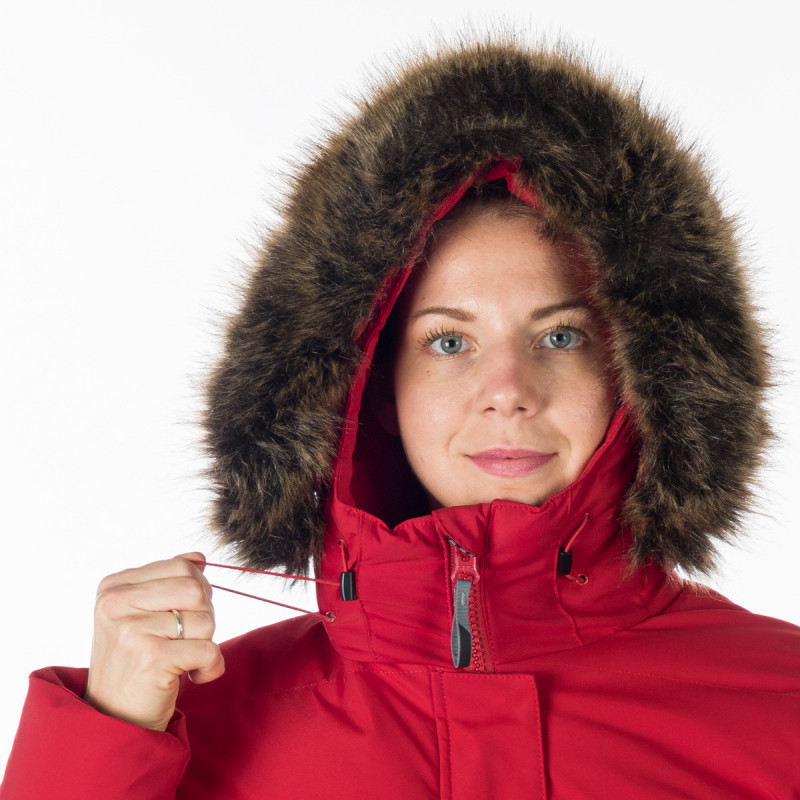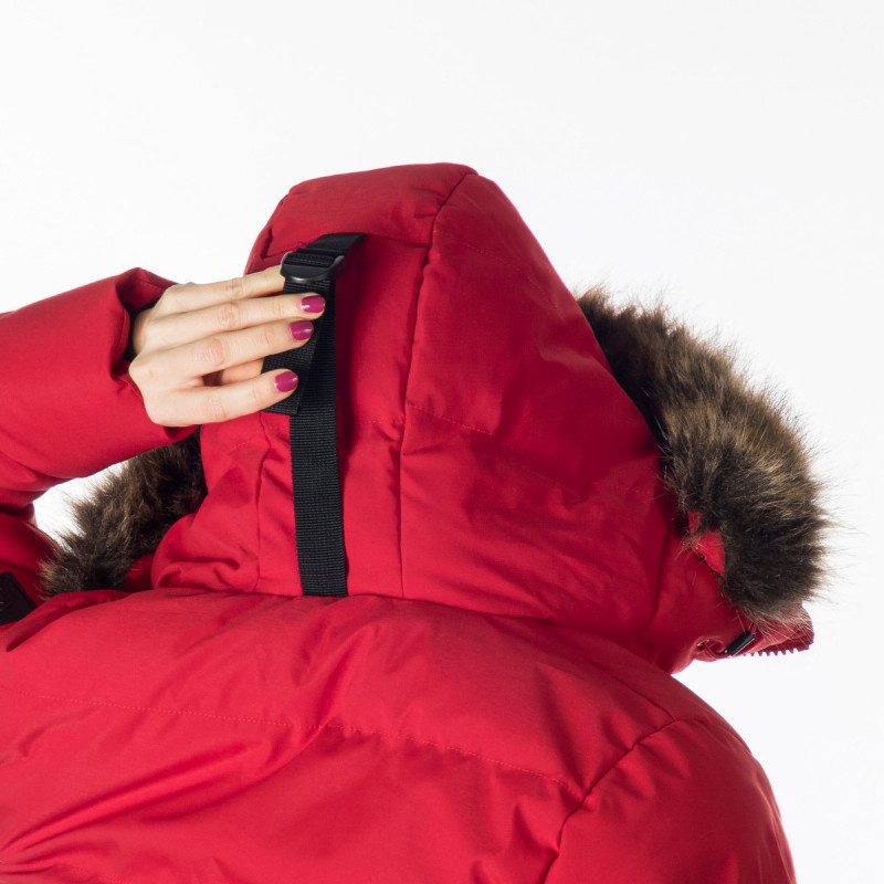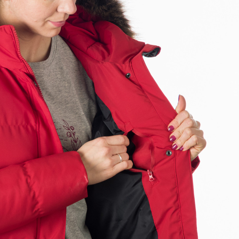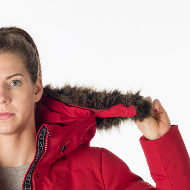 - Dizajnové prvky: Odnímateľná syntetická kožušina, pevná 3D kapucňa, elastické manžety, 3D guľôčky ako páperie, bezpečnostné vrecko so zipsom, predné vrecká, zipsy SBS.