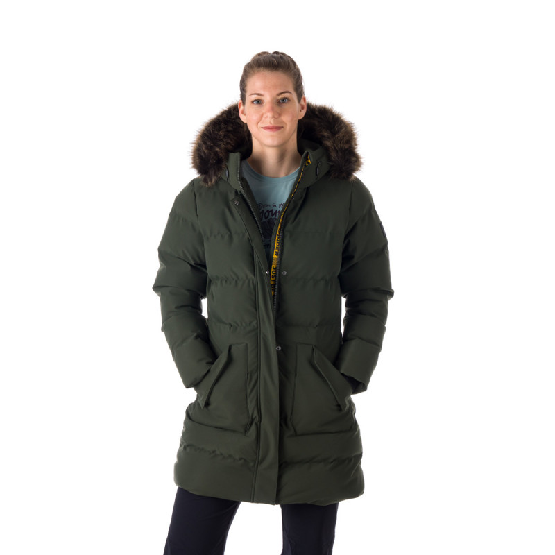 - Štýlová a pohodlná: Elegantný dizajn bundy je doplnený praktickými prvkami ako elastické manžety, odnímateľná syntetická kožušina na kapucni a zipsy SBS.