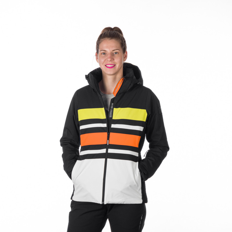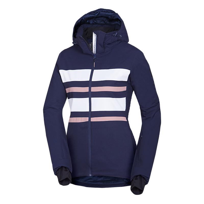 Vytvorená z dvojvrstvového materiálu pozostávajúceho zo 100 % polyesteru, táto bunda poskytuje výnimočnú odolnosť, vetruodolnosť a odpudivosť voči vode, zabezpečujúc optimálny výkon v drsných horských podmienkach. Jej dizajn s bežným strihom ponúka pohodlnú, a pritom lichotivú siluetu, umožňujúcu voľnosť pohybu počas lyžovania a iných zimných aktivít.