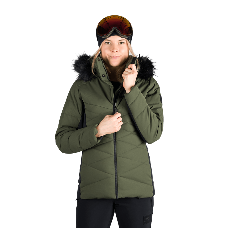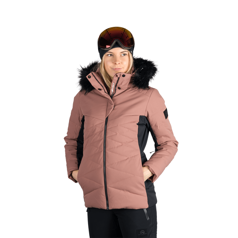BU-6349SNW dámska lyžiarska zateplená módna bunda s kožušinou ABIGAYLE