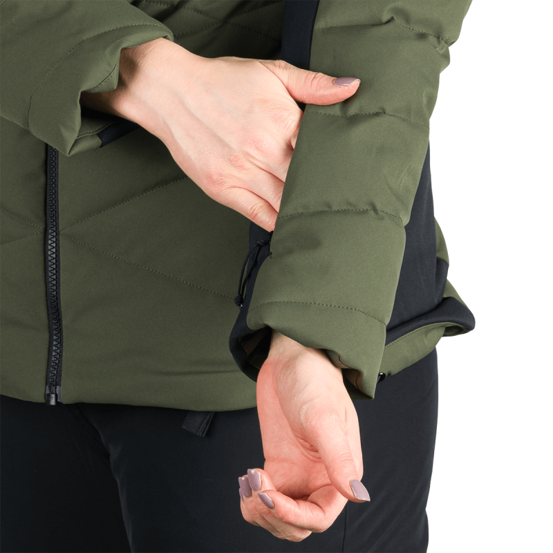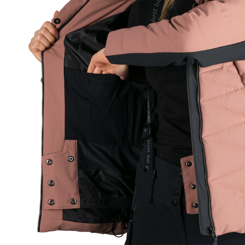 Bunda ABIGAYLE zvyšuje komfort a výkon tým, že vyvažuje teplo s priedušnosťou, čo umožňuje nositeľke udržiavať optimálnu telesnú teplotu počas lyžovania aj après-ski aktivít. V porovnaní so štandardnými lyžiarskymi bundami, jej strečový materiál a systém odvádzania vlhkosti poskytujú lepšiu voľnosť pohybu a celodenné suché pohodlie aj pri meniacom sa počasí.