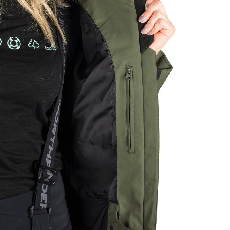 Vyrobená zo 100 % polyesteru, bunda je z odolného dvojvrstvového strečového materiálu, ktorý zlepšuje pohyblivosť. Jej vodoodpudivá úprava je PFC-free, čo zodpovedá ekologicky zodpovednej výrobe. Vonkajší materiál poskytuje vodný stĺpec 10 000 mm a priepustnosť pár 10 000 g/m²/24 h, čo zaručuje spoľahlivú ochranu pred snehom a vlhkosťou pri zachovaní priedušnosti počas intenzívnej aktivity.