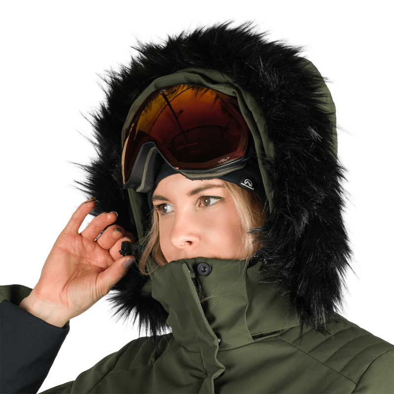 Inteligentný dizajn bundy zahŕňa odnímateľnú 3D kapucňu s odopínateľnou syntetickou kožušinou, zipsy YKK® pre dlhodobú odolnosť a predtvarované rukávy pre ergonomický pohyb. Nastaviteľný pás a integrovaný snežný pás poskytujú bezpečné, prispôsobené nosenie, ktoré zabraňuje prenikaniu snehu. 3D syntetická izolácia verne pripomína perie a zaisťuje výbornú tepelnú účinnosť a ľahké pohodlie, ideálne pri dlhšom pobyte v chladnom prostredí.