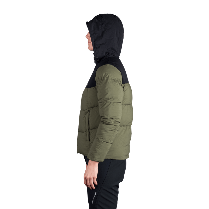 Vyrobená z odolného 100% polyamidu, bunda sa vyznačuje pevným ripstop prevedením s dvojvrstvovou vodeodolnou tkaninou. Povrch je ošetrený ekologickou PFC-free vodoodpudivou úpravou (DWR), ktorá zaistí ochranu životného prostredia a zároveň účinne odpudzuje vlhkosť. Izolácia pozostáva z pokročilých 3D vlákien imitujúcich teplo a pocit prírodného páperia, čím poskytuje výbornú tepelnú reguláciu bez zbytočnej hmotnosti.