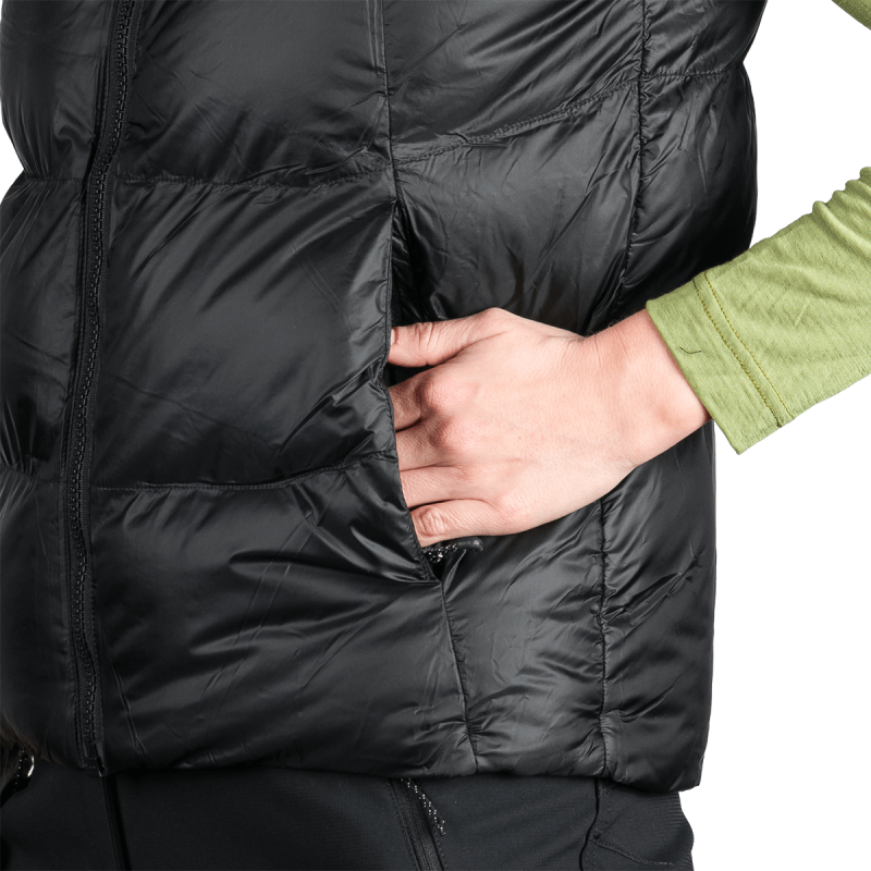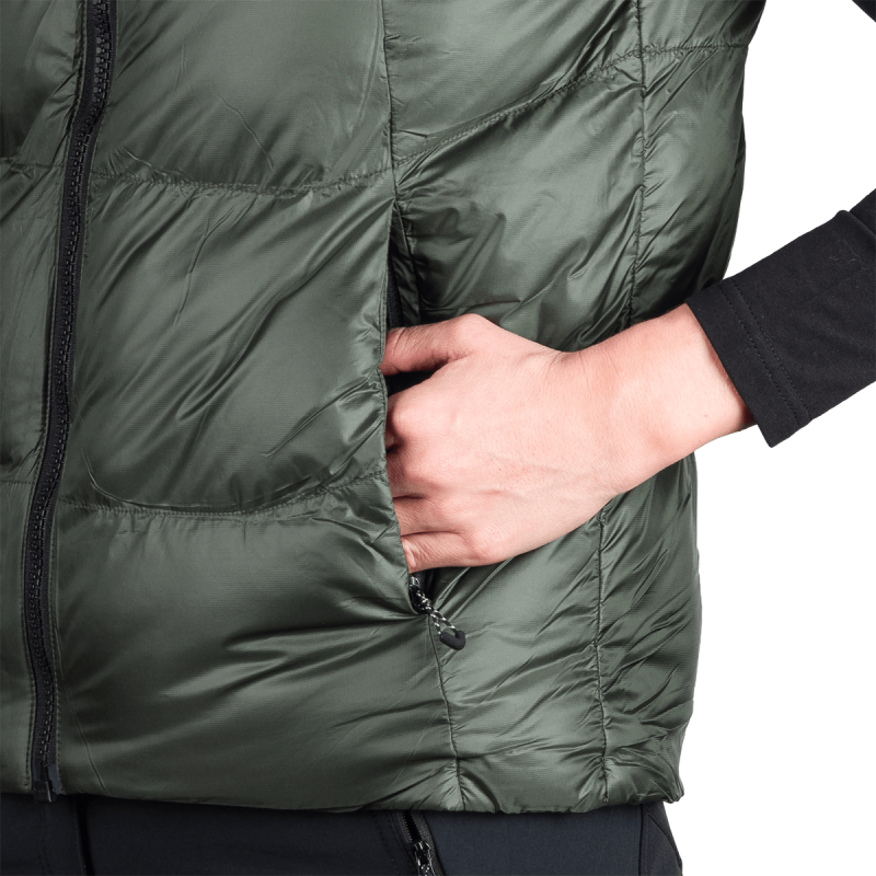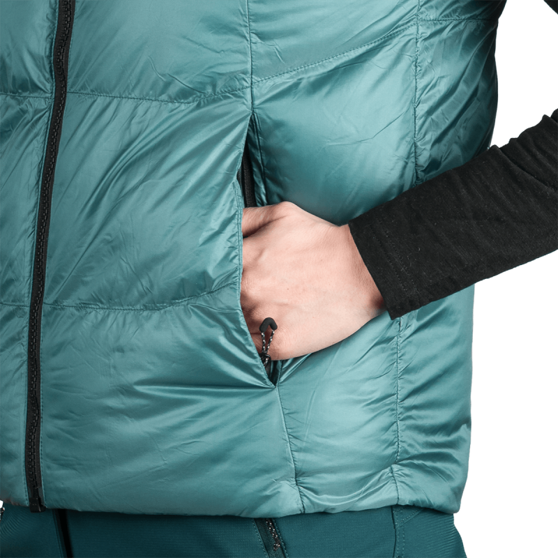 Vesta je vyrobená zo 100 % polyamidu z odolnej 1-vrstvovej ripstop tkaniny, ktorá je odolná proti prieniku peria (down proof) a neobsahuje PFC. Tieto ekologicky šetrné materiály poskytujú vodeodpudivú ochranu pri zachovaní nízkej hmotnosti. Izolácia využíva pokročilé 3D vlákna napodobňujúce prírodné páperie, ktoré ponúkajú pôsobivú tepelnú účinnosť bez zbytočného objemu či hmotnosti.