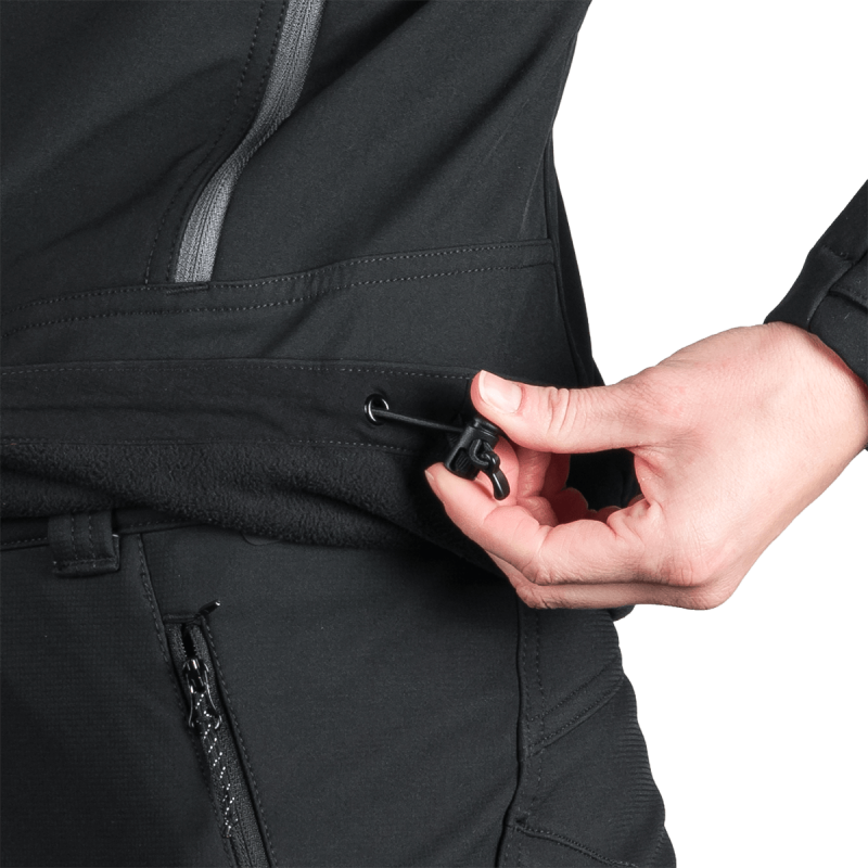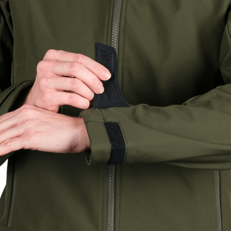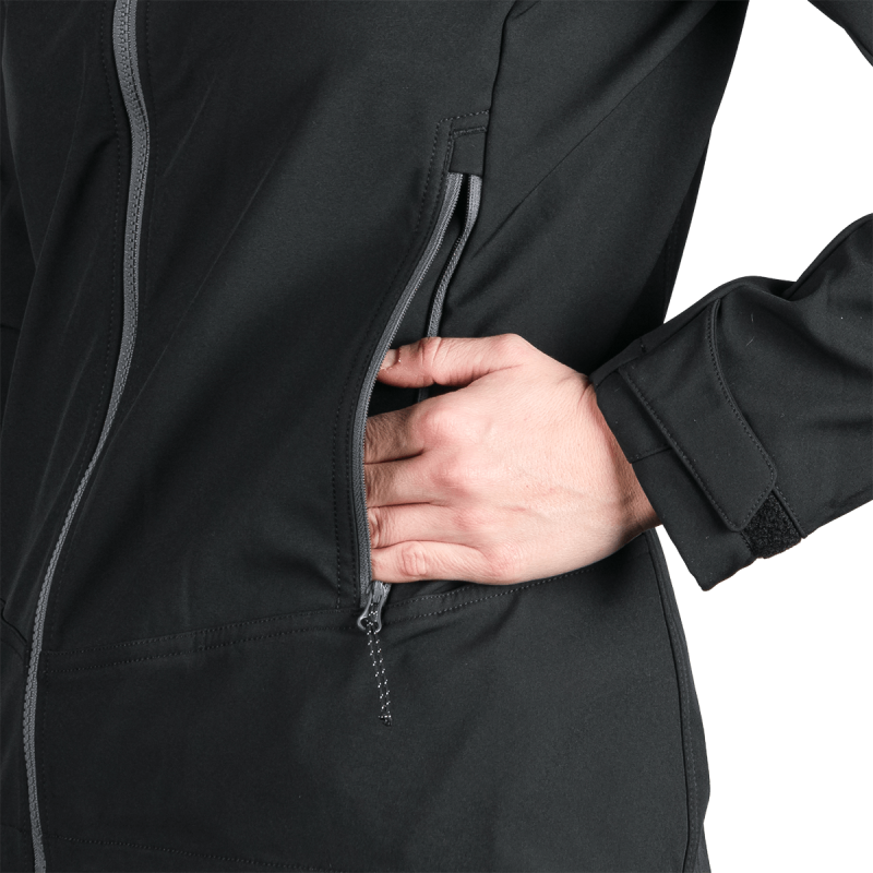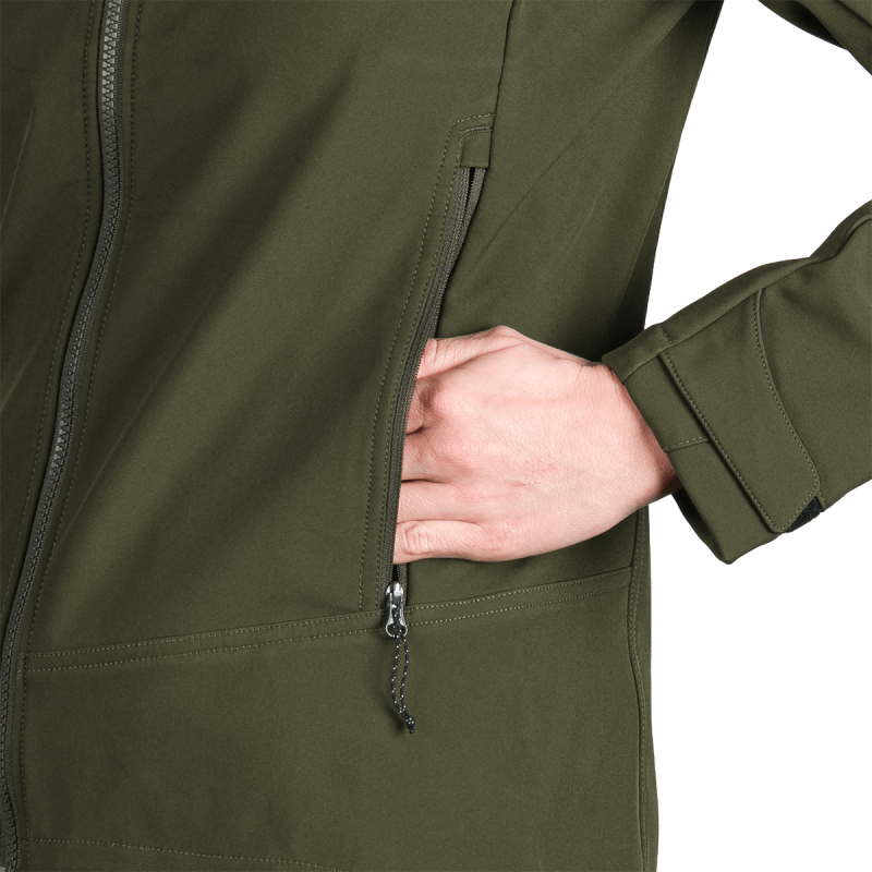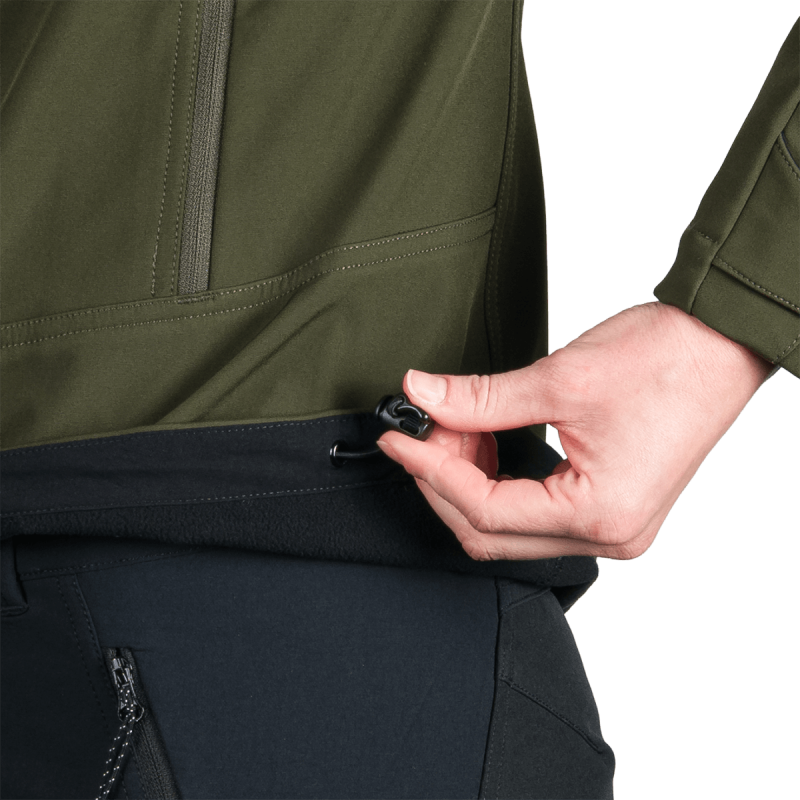 Táto vrchná bunda je vyrobená z prémiového, ekologicky šetrného 3-vrstvového softshellového materiálu obsahujúceho 92% polyester a 8% spandex. Pokročilá 4-smerná strečová tkanina zabezpečuje vynikajúcu flexibilitu a rozsah pohybu. Vodoodpudivá úprava bez PFC podporuje udržateľnosť a zároveň poskytuje vysokú ochranu pred nepriaznivým počasím. Nepremokavosť 5 000 mm a rovnaká priedušnosť 5 000 g/m²/24 h odrážajú rovnováhu medzi ochranou pred počasím a odvodom vlhkosti.