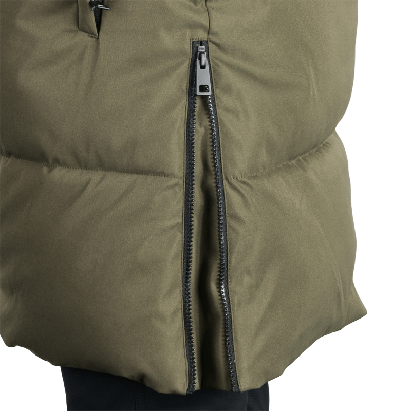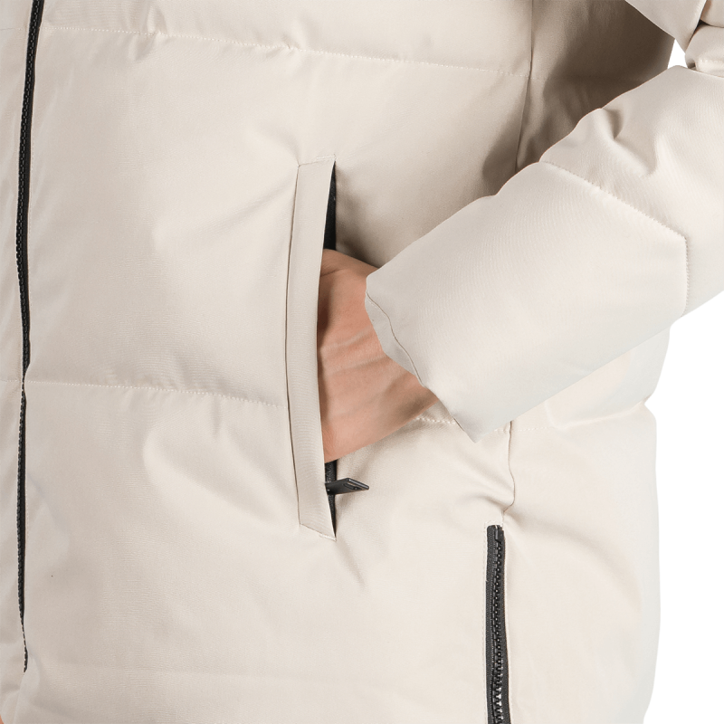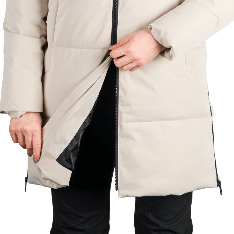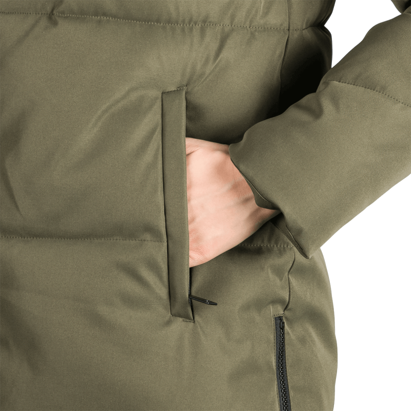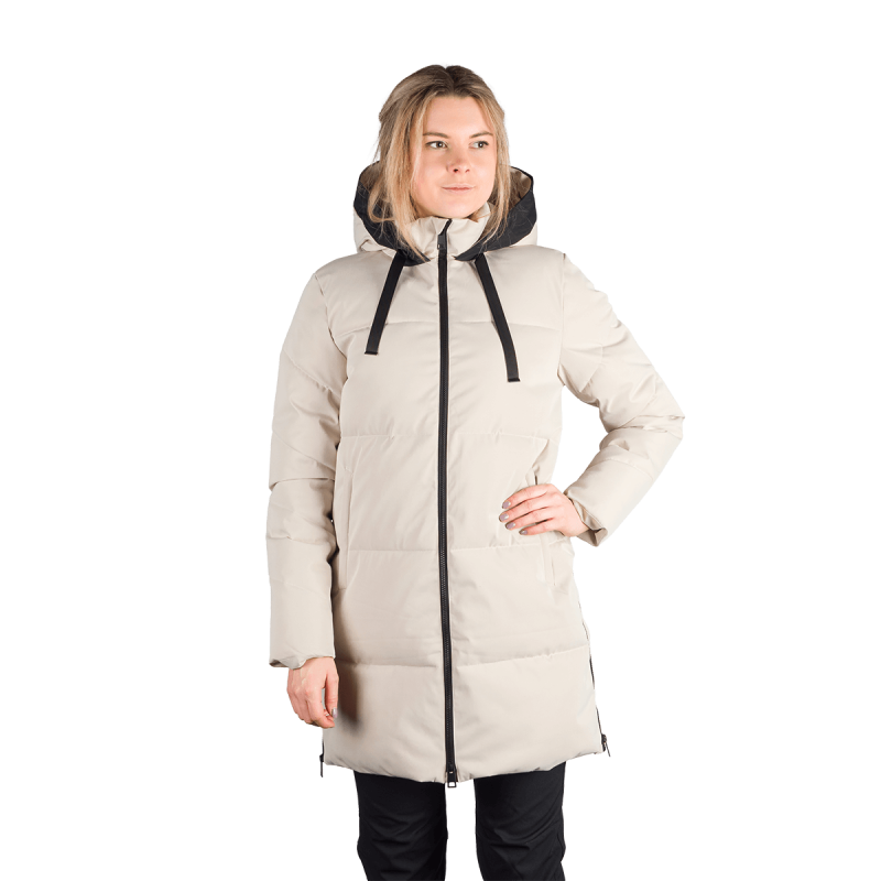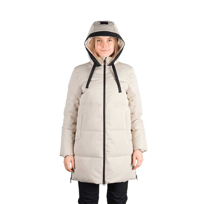 Bunda je vyrobená z kvalitnej jednovrstvovej tkaniny zo 100 % polyesteru, čo zaručuje odolnosť a ochranu pred poveternostnými vplyvmi. Vnútro obsahuje výplň SEAL, navrhnutú tak, aby napodobnila páperie, no zároveň sa ľahko udržiavala a poskytovala stabilný tepelný komfort. Táto konštrukcia zabezpečuje dostatočné teplo a pohodlie, ideálne pre prechodné obdobia alebo mierne zimy.