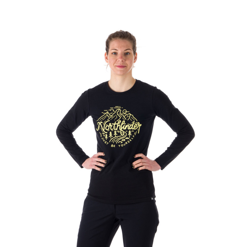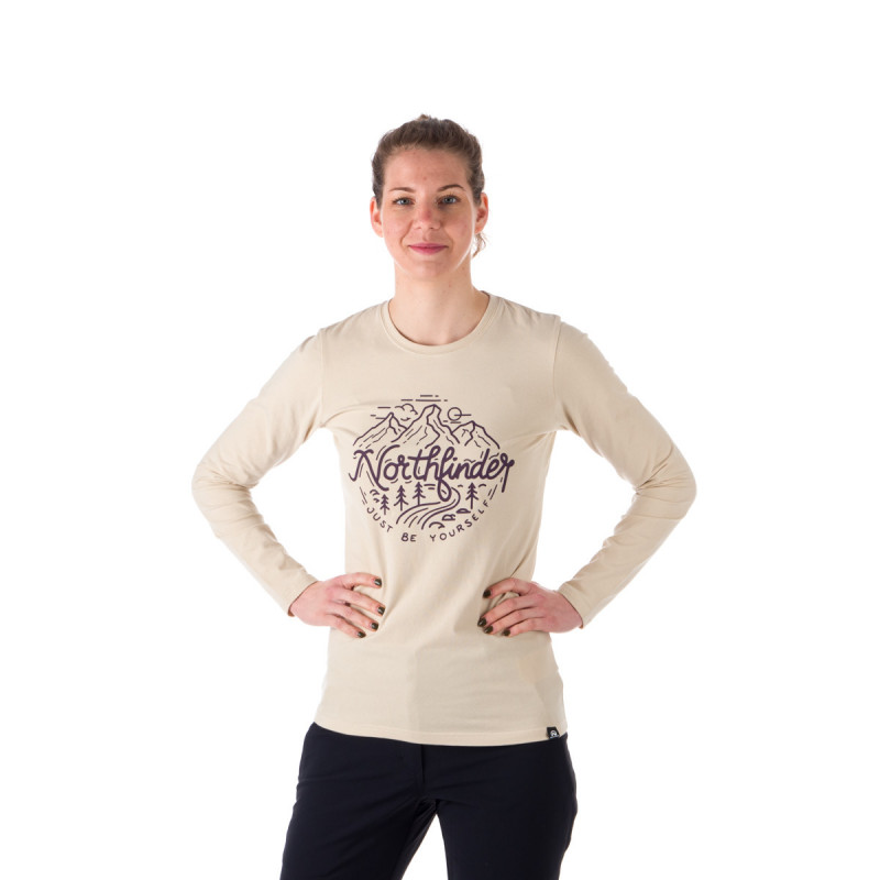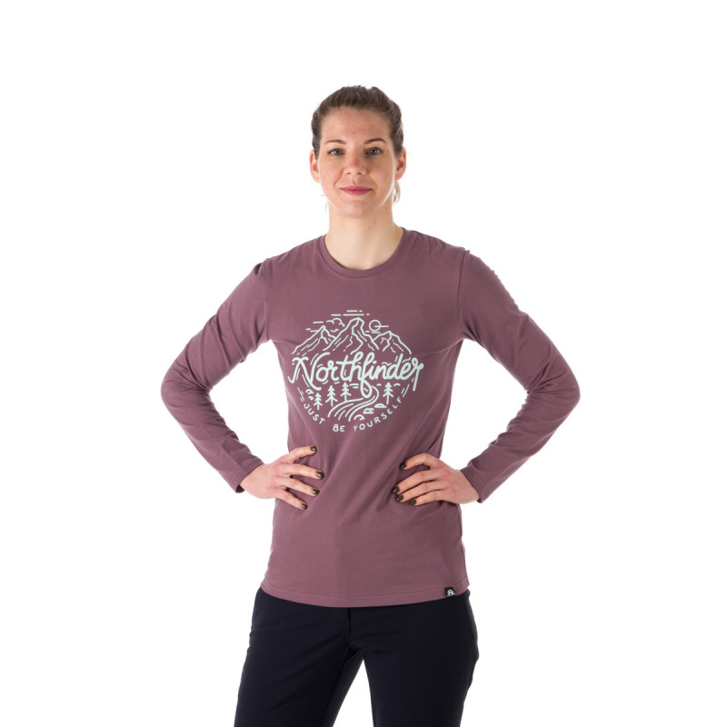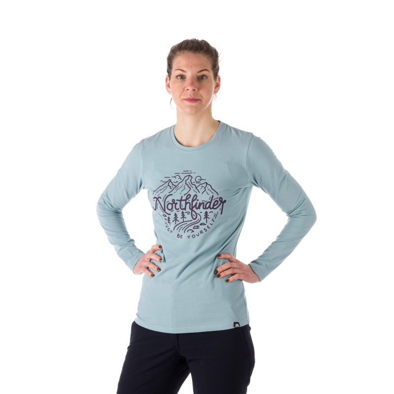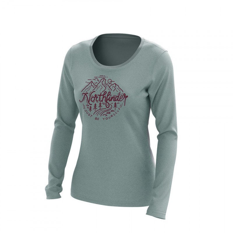 Dámske tričko s dlhým rukávom má klasický strih s výraznou potlačou alpského motívu a nápisom Northfinder na hrudi. Vyrobené zo zmesi 95 % bavlny a 5 % spandexu, toto tričko ponúka jemné, pružné a pohodlné nosenie. Okrúhly výstrih s rebrovaným lemom zabezpečuje, že švy nedráždia krk alebo ramená, čo ho robí ideálnym na každodenné nosenie, cestovanie alebo vonkajšie aktivity.