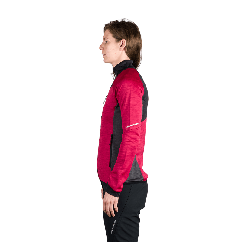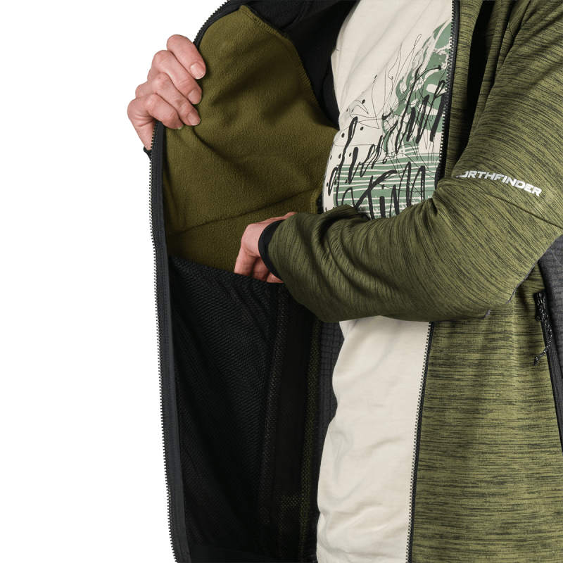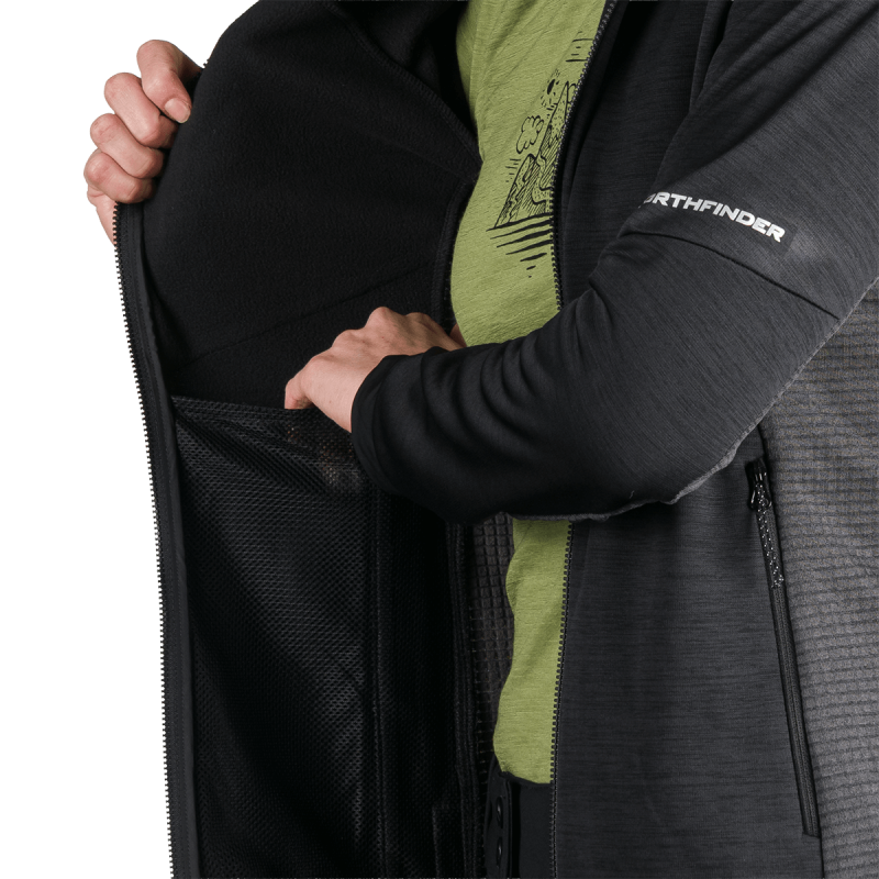 Sveter je vyrobený zo 100 % polyesteru a používa prvotriedny melírovaný fleece s úpravou proti žmolkovaniu, ktorá zabezpečuje dlhú životnosť látky aj pri častom nosení a praní. Integrovaný úpletový strečový materiál umožňuje plynulý pohyb, zatiaľ čo vnútorná štruktúra mriežky zlepšuje tepelnú reguláciu a odvádzanie vlhkosti – kľúčové výhody pre funkčné vrstvenie.