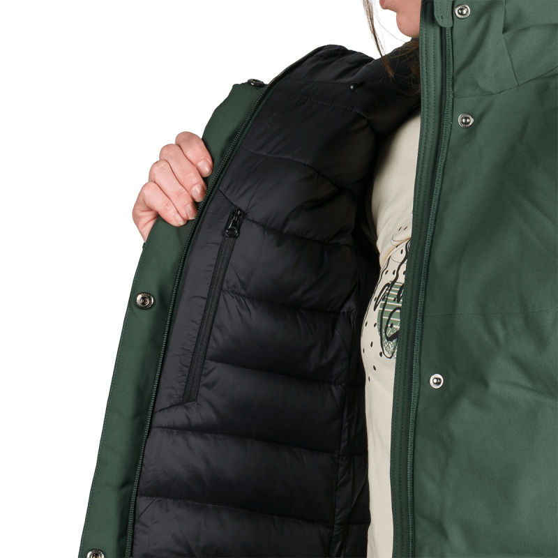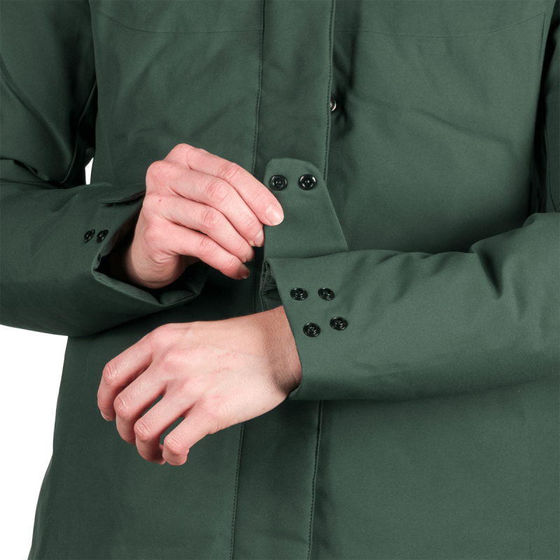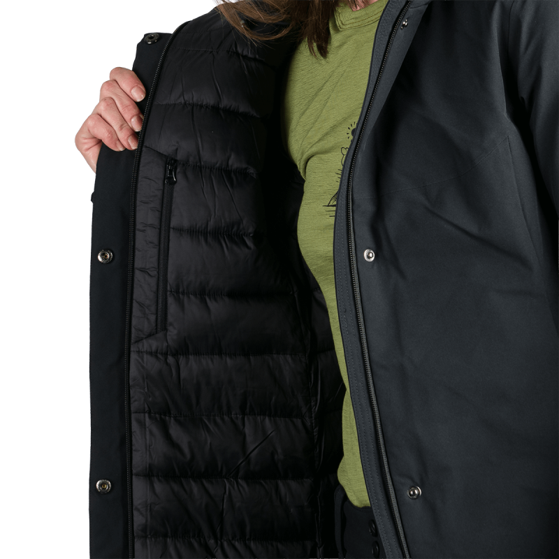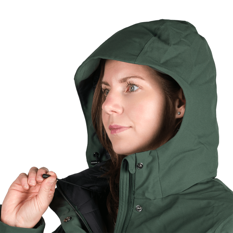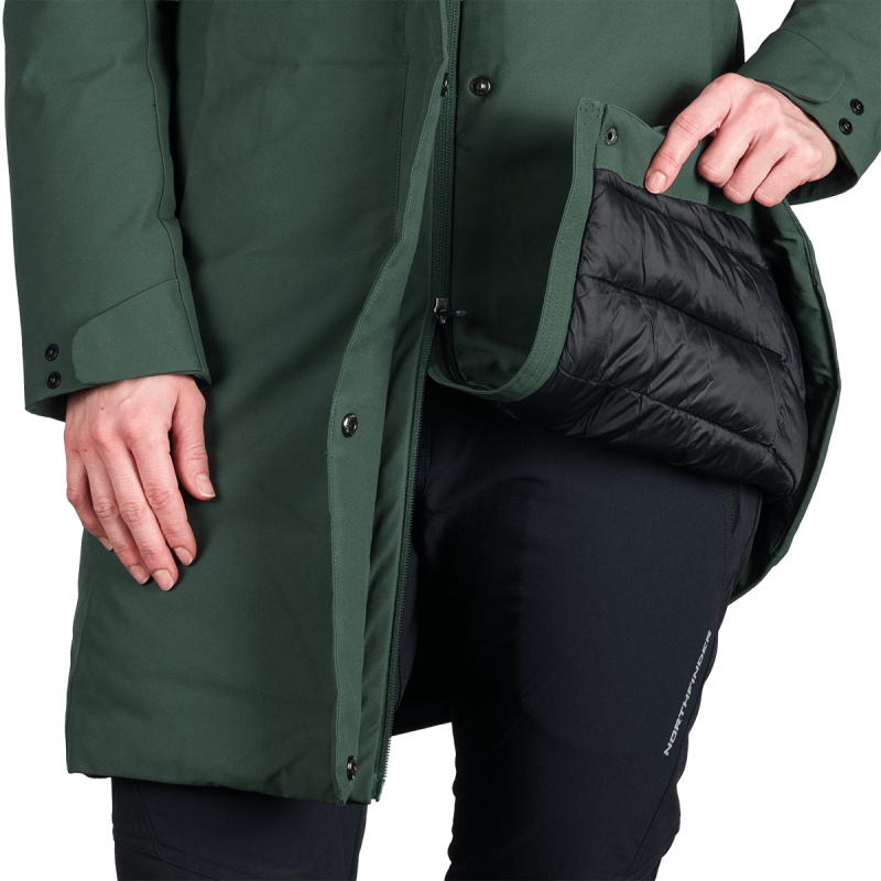 Táto bunda je navrhnutá tak, aby maximalizovala pohodlie nositeľky pri dynamickom pohybe v prírode. Priedušnosť a vodotesnosť pomáhajú regulovať teplotu a vlhkosť, čím udržujú telo v suchu a teple. Syntetická výplň napodobňuje tepelnú účinnosť páperia, no zároveň sa ľahšie udržiava a rýchlejšie schne, čo jej dáva výhodu pri vlhkom alebo nestálom počasí.