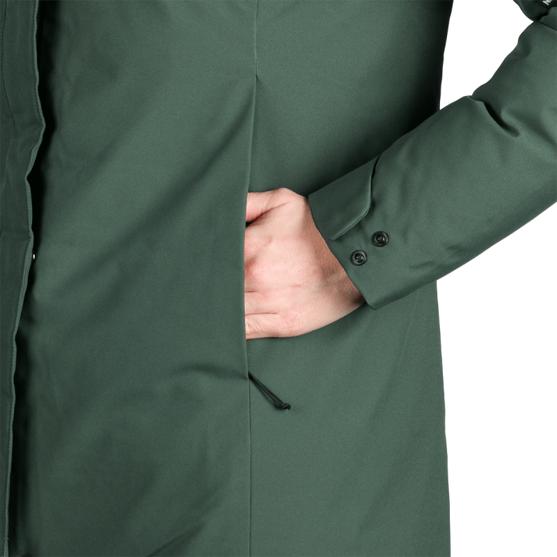 RANDI má klasický strih pre voľnosť pohybu a lepšie možnosti vrstvenia. Kľúčovými dizajnovými prvkami sú pevná 3D kapucňa pre lepšiu ochranu, zipsy YKK® pre vyššiu odolnosť, nastaviteľné manžety a predtvarované rukávy podporujúce pohodlný, ergonomický pohyb. Kritické švy sú podlepené, aby sa zabránilo prenikaniu vody v citlivých oblastiach, a výplň z 3D vlákien napodobňujúcich páperie poskytuje účinné tepelné vlastnosti bez zbytočného objemu.