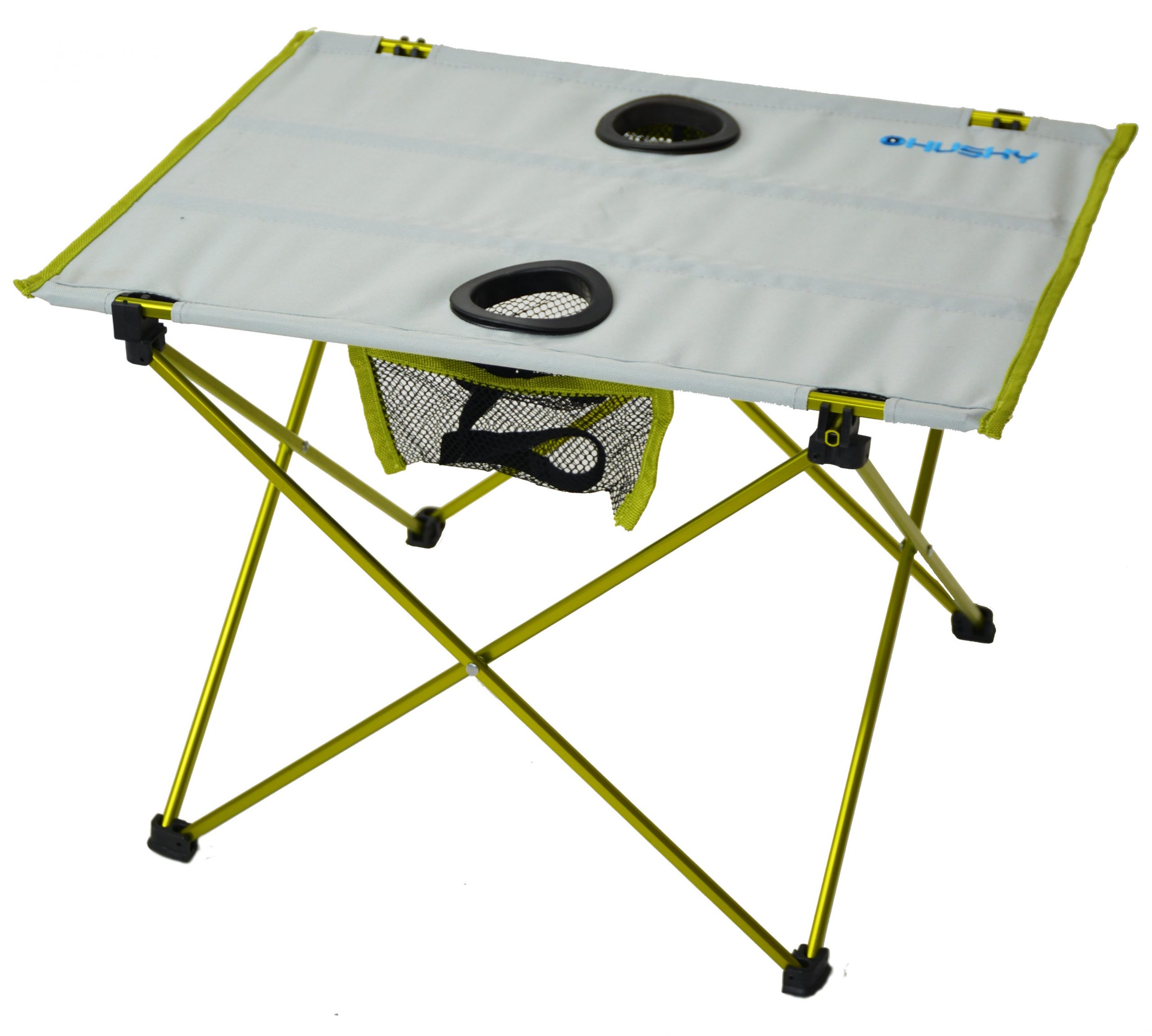Ultraľahký skladací stolík na túry aj do kempu. Stôl je vybavený držiakmi na nápoje a odkladacou sieťkou.