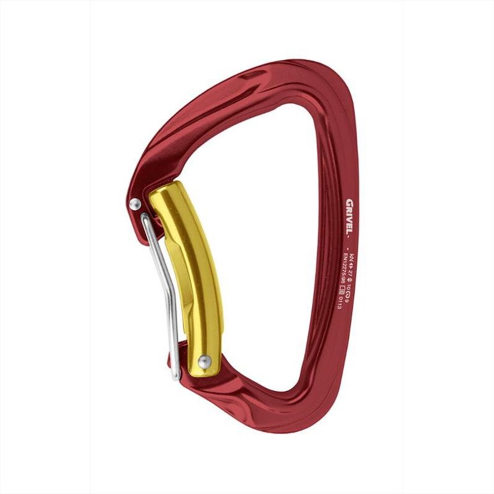 - velmi lehká D karabina s patentovaným zámkem Twin-Gate, v tomto případě složeným z drátové a plné key-lock západky