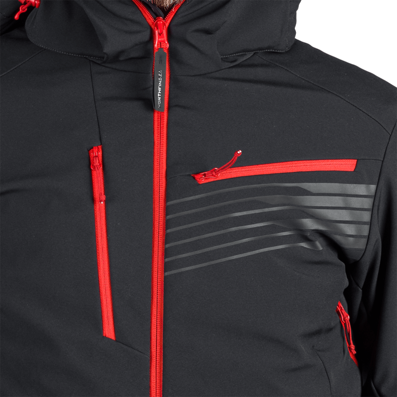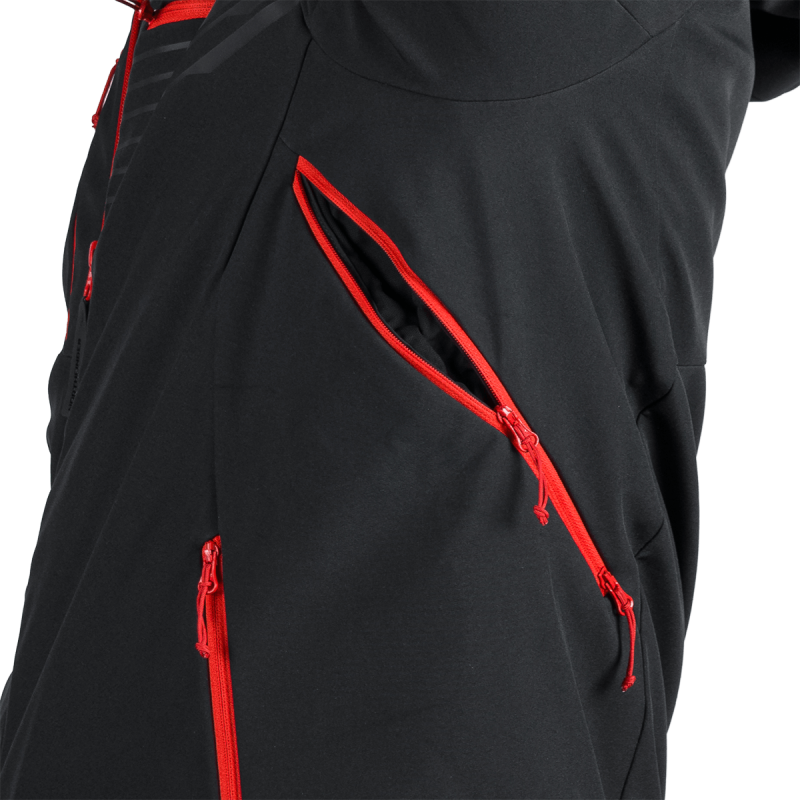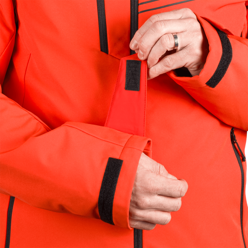 Táto bunda je navrhnutá pre výkon – klasický strih s predtvarovanými rukávmi a nastaviteľnými manžetami podporuje dynamický pohyb. Odnímateľná 3D kapucňa zvyšuje univerzálnosť, zatiaľ čo vetracie otvory na zips v oblasti podpazušia zabezpečujú priedušnosť pri intenzívnej aktivite. Zipsy YKK® a nastaviteľný pás s integrovaným snehovým pásom zvyšujú odolnosť a komfort odevu, čím je ideálny na dlhodobé používanie v zasnežených terénoch. S vodným stĺpcom 10 000 mm a priedušnosťou 5 000 g/m²/24 h ponúka spoľahlivú ochranu pred snehom a vetrom pri zachovaní efektívnej regulácie vlhkosti.