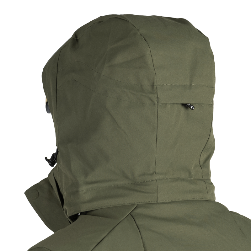 Bunda ZYGMUNT má pravidelný strih a množstvo technických prvkov navrhnutých na podporu pohodlia a ochrany. Kľúčové detaily zahŕňajú odnímateľnú 3D kapucňu, vetracie zipsy v podpazuší na reguláciu teploty a zipsy YKK® pre lepšiu odolnosť. Rukávy sú skonštruované s nastaviteľnými manžetami, elastickými vsadkami, otvormi na palec a predtvarovaným dizajnom pre lepšiu ergonómiu. S vodným stĺpcom 10 000 mm a priedušnosťou 10 000 g/m²/24h bunda poskytuje spoľahlivú vodeodolnosť a priedušnosť aj v náročných podmienkach.