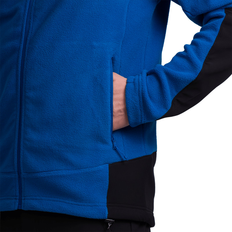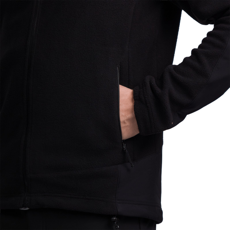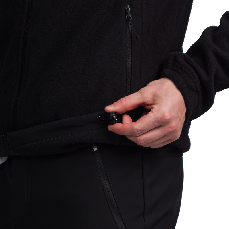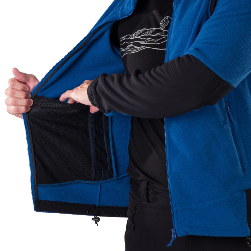 Sveter ponúka klasický ergonomický strih so zameraním na outdoorovú funkčnosť. Kľúčové dizajnové prvky zahŕňajú predtvarované rukávy pre neobmedzený rozsah pohybu, elastické manžety pre pohodlie, nastaviteľný golier pre lepšiu ochranu pred vetrom a nastaviteľný pás pre bezpečné nosenie. Spevnené ramená poskytujú extra odolnosť voči oderu a kvalitné zipsy YKK® zabezpečujú spoľahlivý výkon. Hoci nie je nepremokavý, tento flís poskytuje výborné tepelné vlastnosti ako stredná vrstva pod vrchnou pláštenkou v mokrých alebo chladných podmienkach.