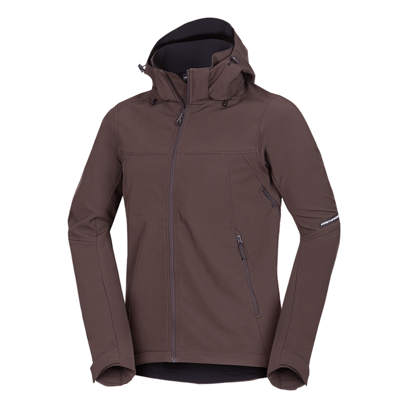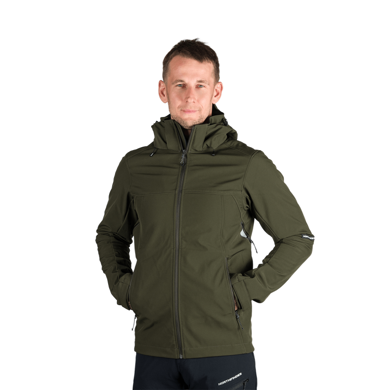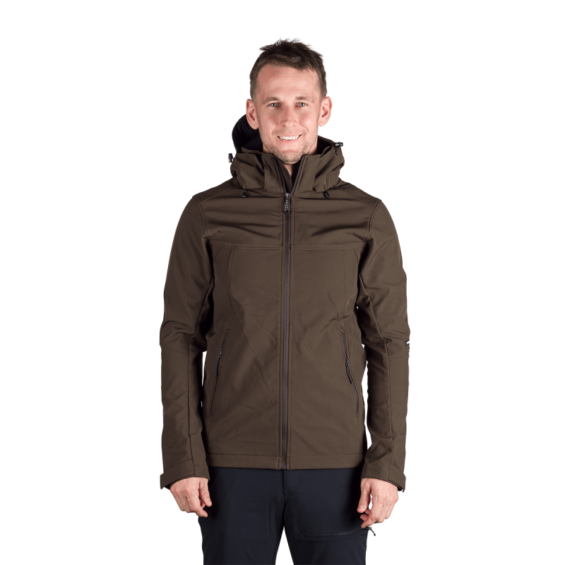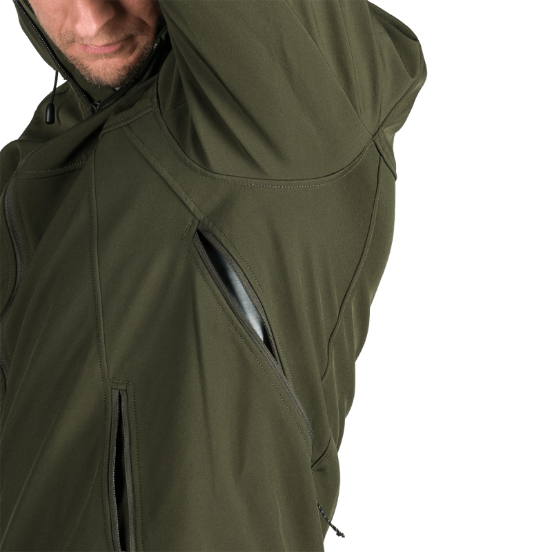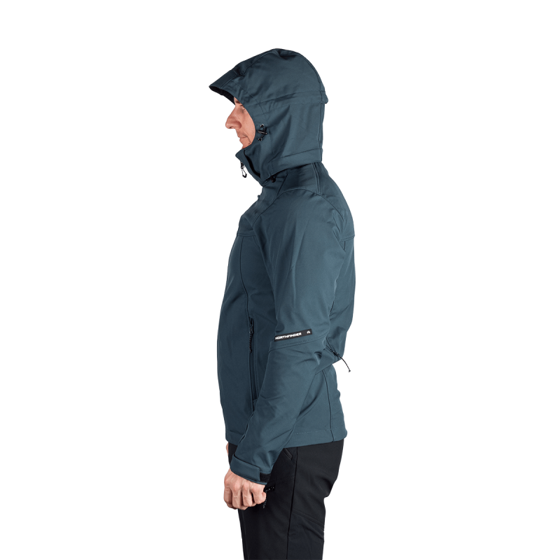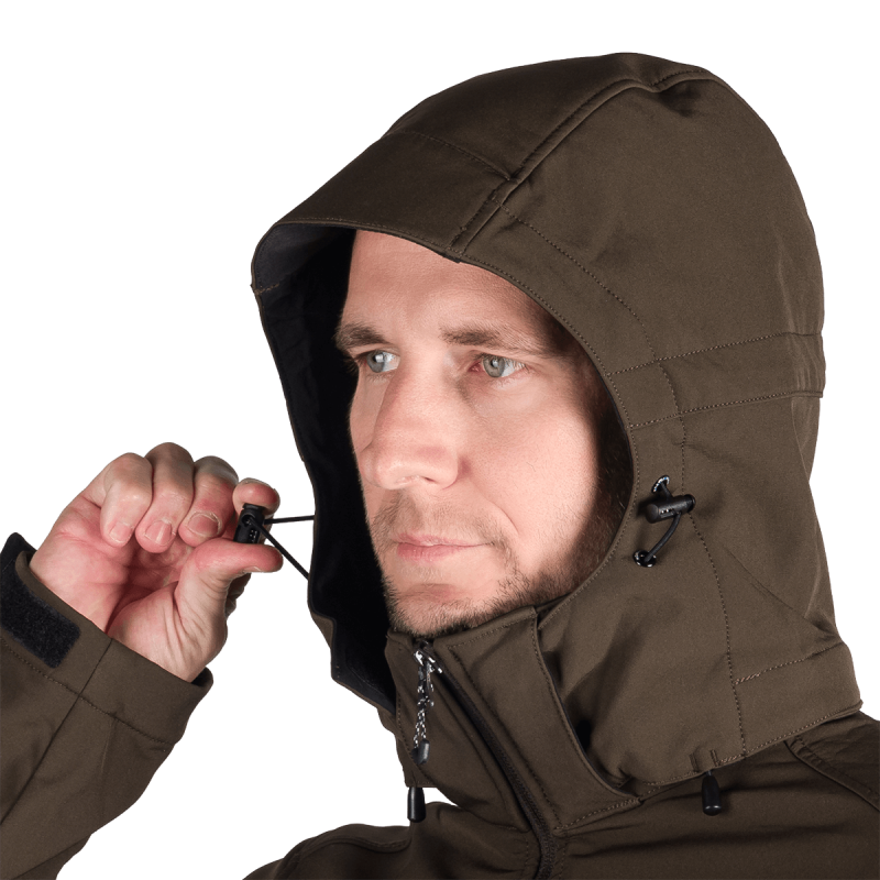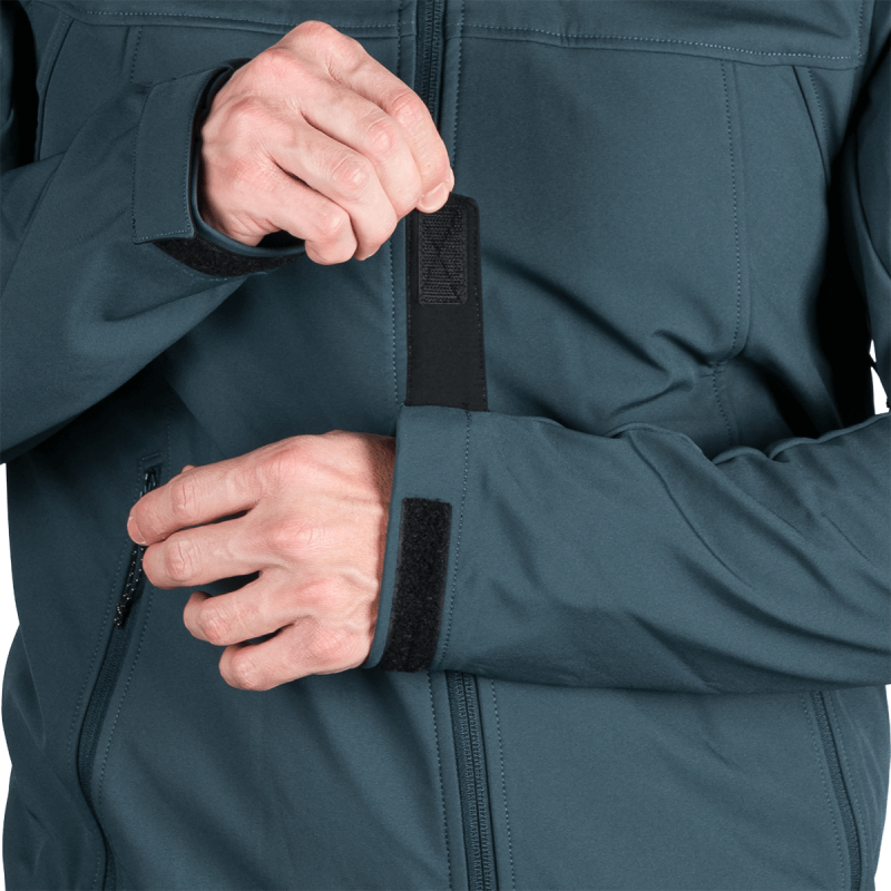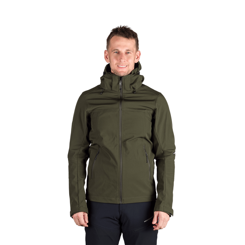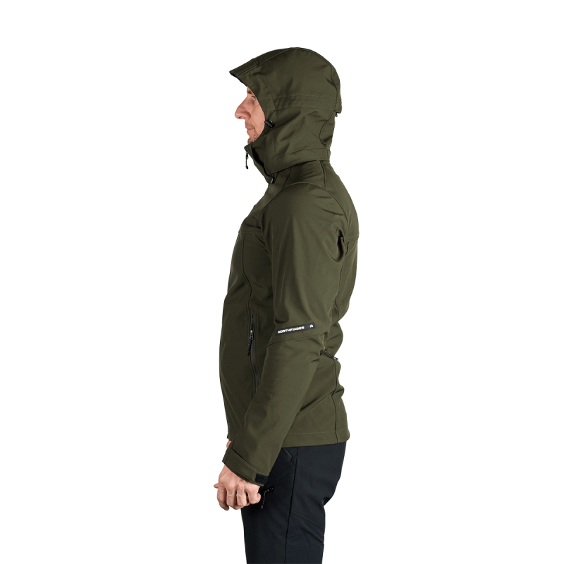 Bunda je vyrobená z prémiovej 3-vrstvovej softshellovej tkaniny pozostávajúcej z 92 % polyesteru a 8 % spandexu, čo zaručuje odolnosť a zároveň pružnosť. Vďaka 4-smernému elastickému materiálu a vodoodpudivej úprave bez PFC zodpovedá ekologickým štandardom. Tkanina dosahuje vodný stĺpec 5 000 mm a paropriepustnosť 5 000 g/m²/24 hodín, čo zabezpečuje optimálnu priedušnosť pri záťaži.