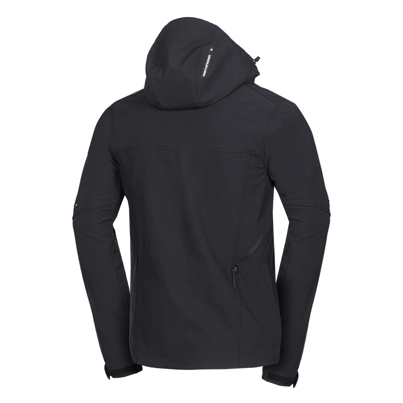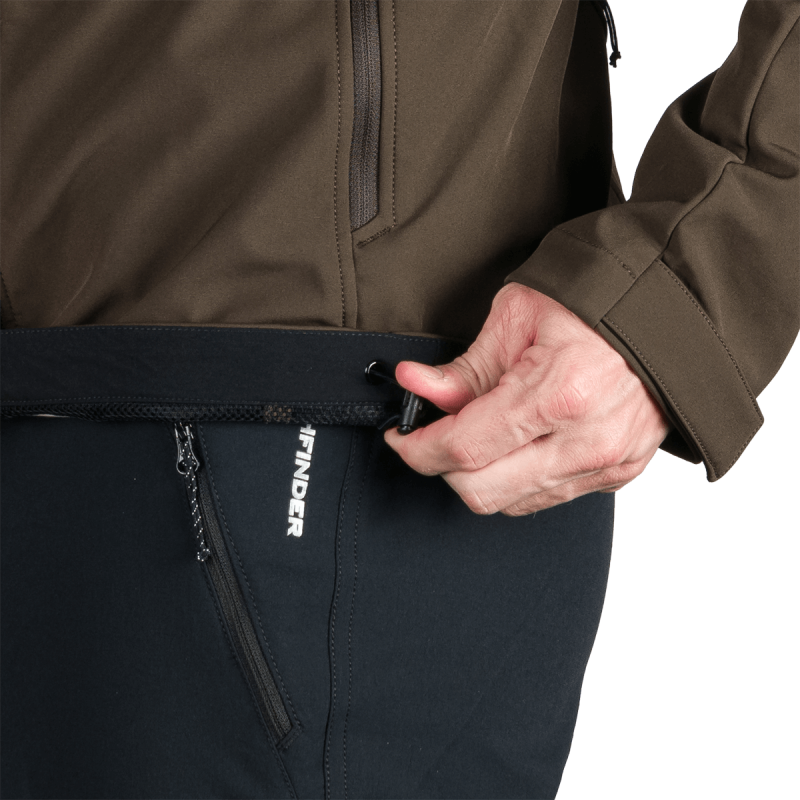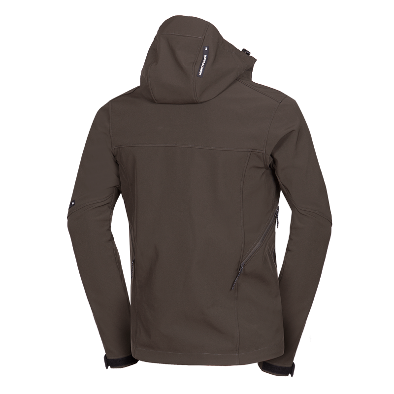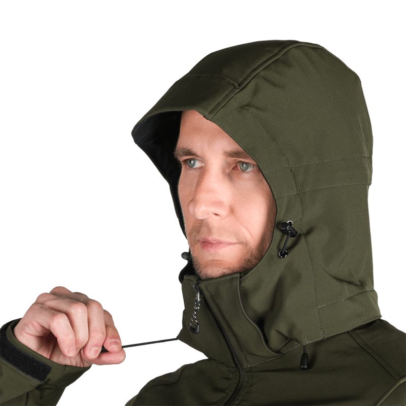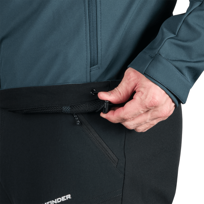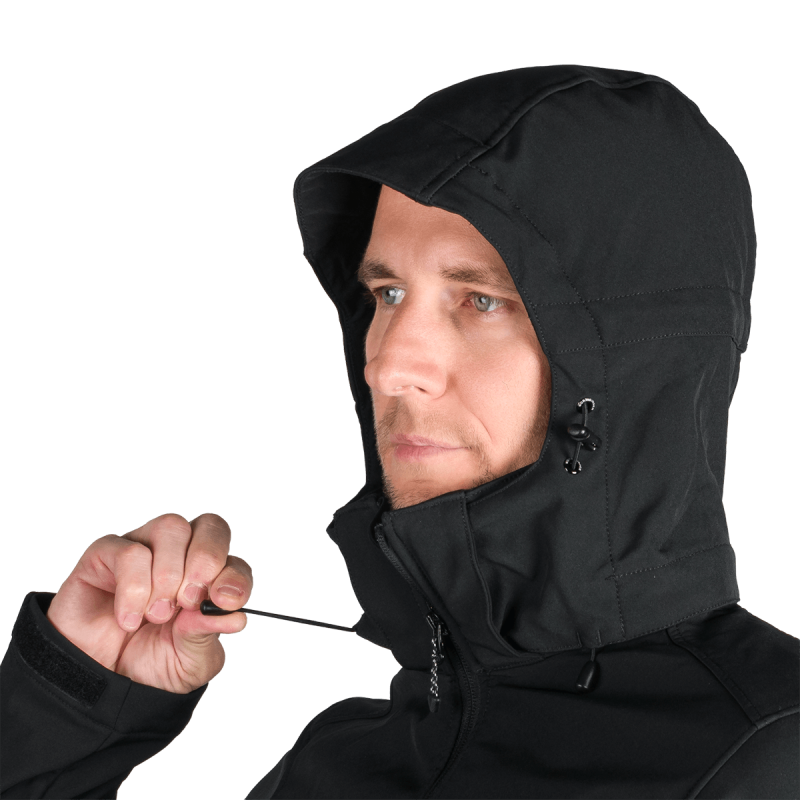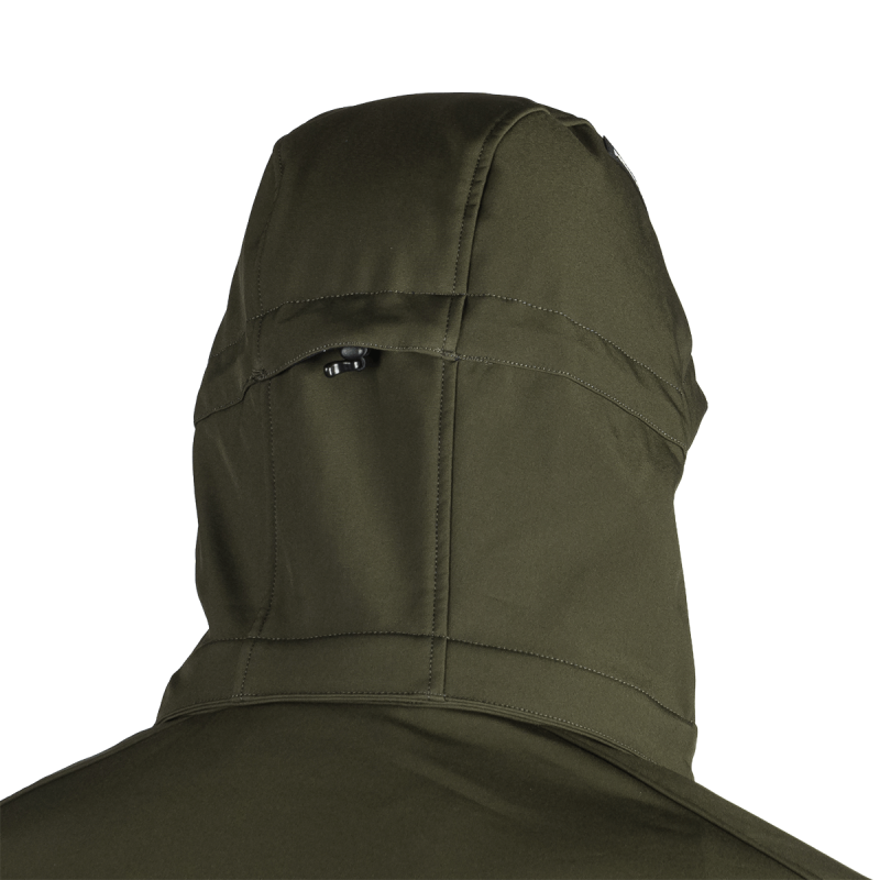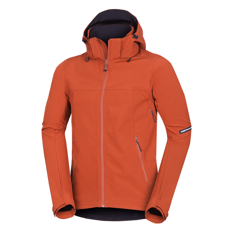 Bunda je vyrobená z prémiovej 3-vrstvovej softshellovej tkaniny pozostávajúcej z 92 % polyesteru a 8 % spandexu, čo zaručuje odolnosť a zároveň pružnosť. Vďaka 4-smernému elastickému materiálu a vodoodpudivej úprave bez PFC zodpovedá ekologickým štandardom. Tkanina dosahuje vodný stĺpec 5 000 mm a paropriepustnosť 5 000 g/m²/24 hodín, čo zabezpečuje optimálnu priedušnosť pri záťaži.