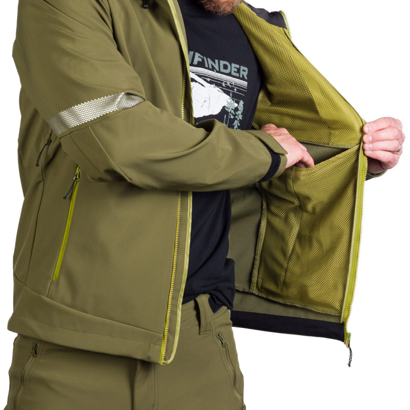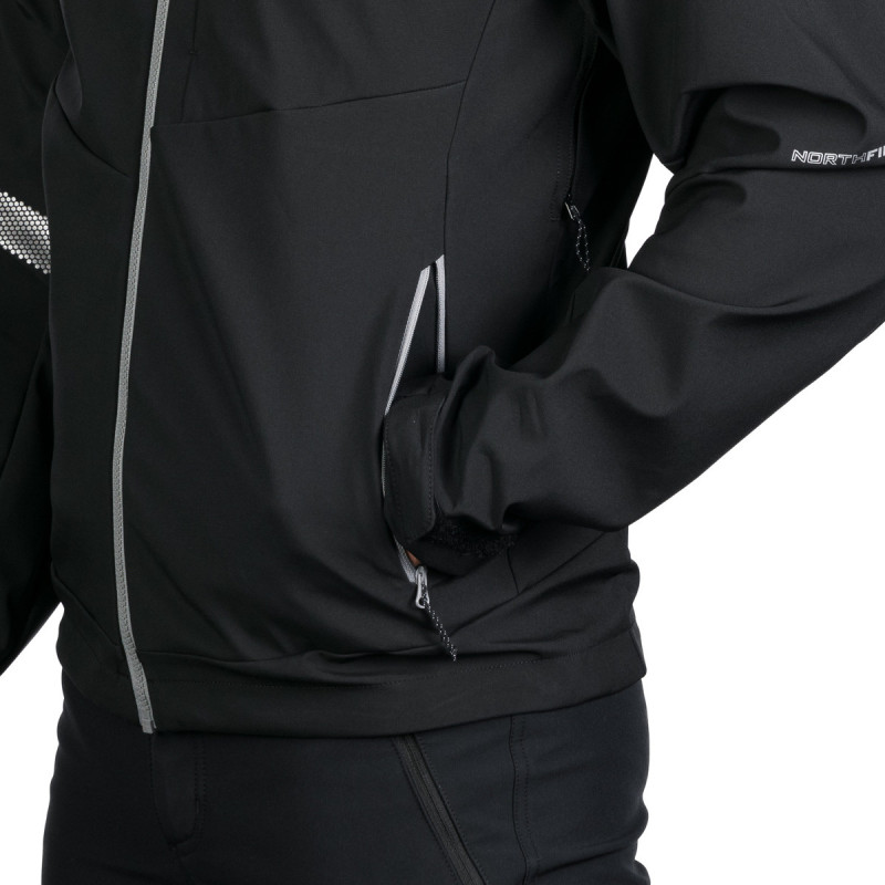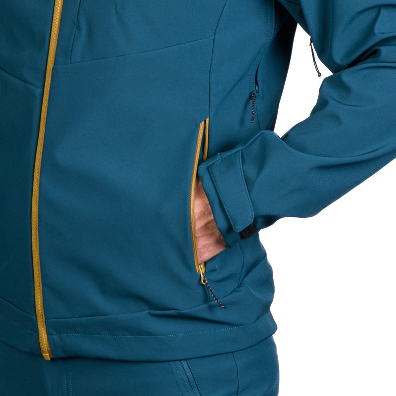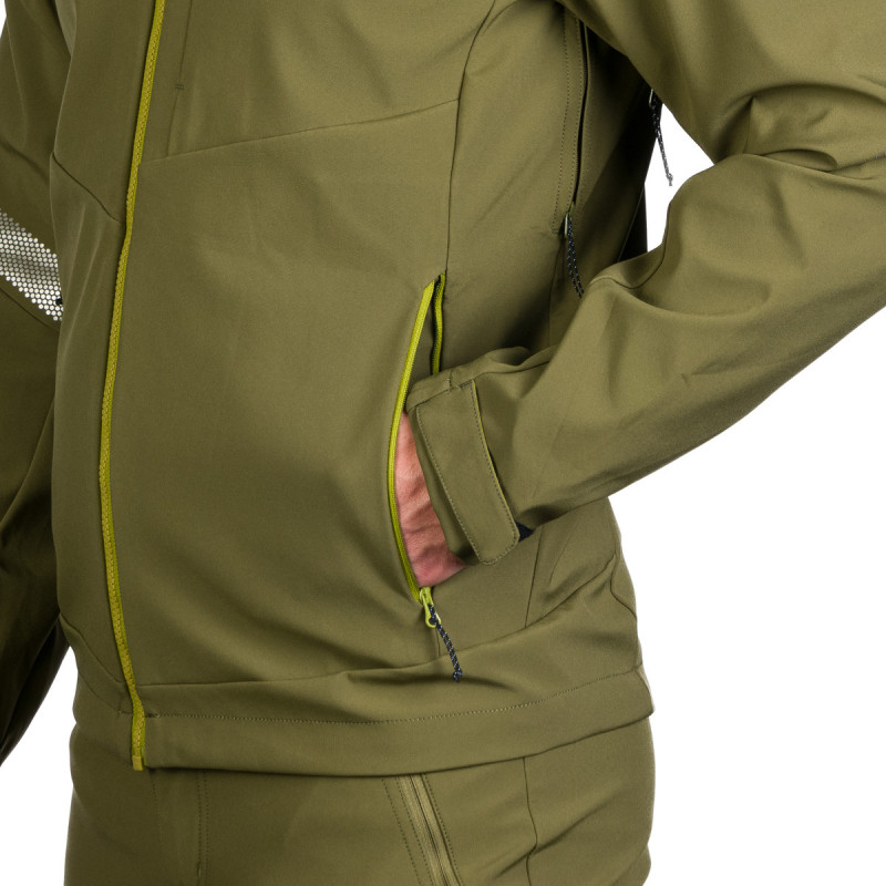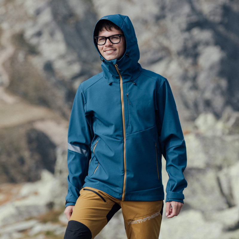 Vyrobená zo 92 % polyesteru a 8 % spandexu, táto bunda je vybavená 3-vrstvovým softshellom, ktorý je vetruodolný a priedušný. Tkanina s 4-smerným strečom zabezpečuje neobmedzený pohyb.