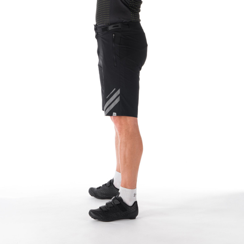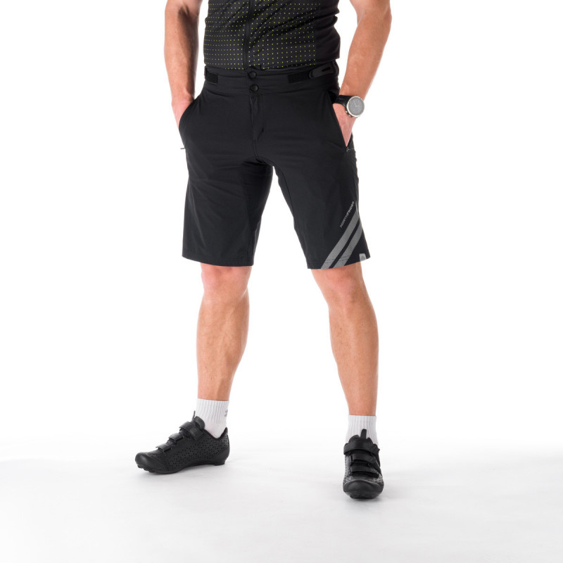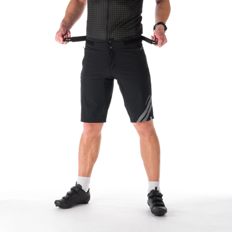 Spároval som technické cyklistické šortky na dlhé jazdy so samostatnými vložkami pre cyklistiku. Použitý materiál je pružný, neabsorbujúci a ponúka vynikajúcu priedušnosť. Určite oceníte tvarovanú konštrukciu s elastickými manžetami na úrovni lýtok a medzi nohami, čo zaisťuje pohodlie v sedle. Profilovaný pás so dvoma ratchet uzávierkami je doplnený o elastický šnúrok s vysokokvalitným TPU suchým zipsom, aby zostali počas celej cesty pevne na mieste. Cyklistické šortky majú kombinovanú peno-gelovú výstelku, ktorá je dokončená protišmykovým elastickým pásom. Ploché švy sú umiestnené tak, aby neobťažovali. Dve predné vrecká na zips a malé zadné vrecko poskytujú dostatok miesta pre všetko, čo potrebujete. Strategicky umiestnené reflexné prvky zaisťujú vašu bezpečnosť večer.