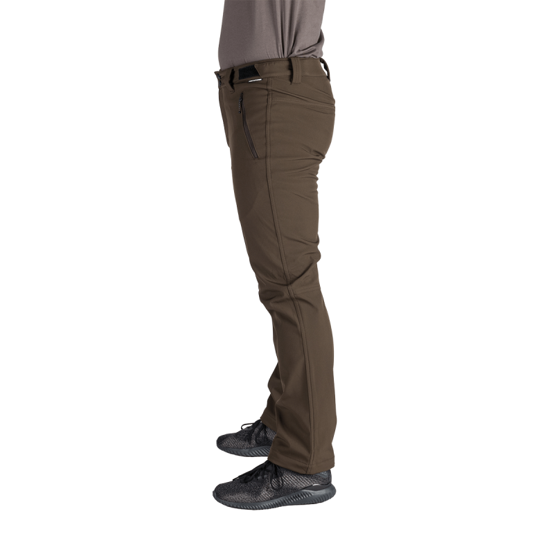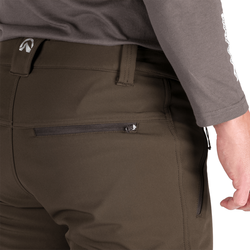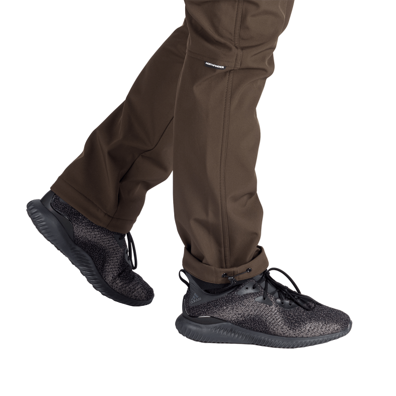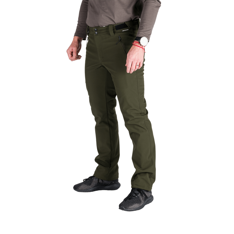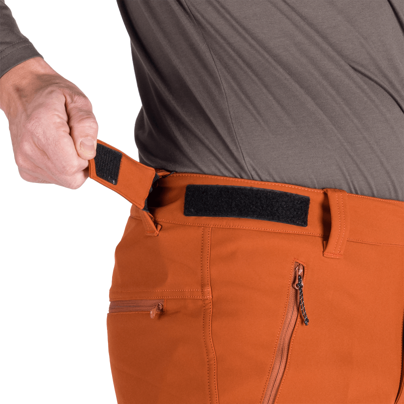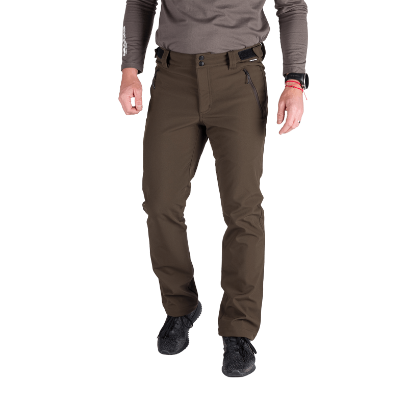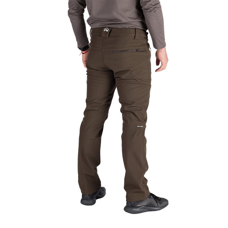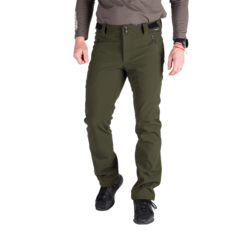 Nohavice sú vyrobené z odolnej 3-vrstvovej softshellovej tkaniny zložením 92 % polyester a 8 % spandex. Táto kombinácia zaručuje optimálnu flexibilitu vďaka technológii 4-smerného stretchu, ktorá zabezpečuje voľný rozsah pohybu v nerovnom teréne. Materiál je bez PFC a vodoodpudivý, čo predstavuje ekologickú ochranu proti vode bez použitia škodlivých chemikálií.