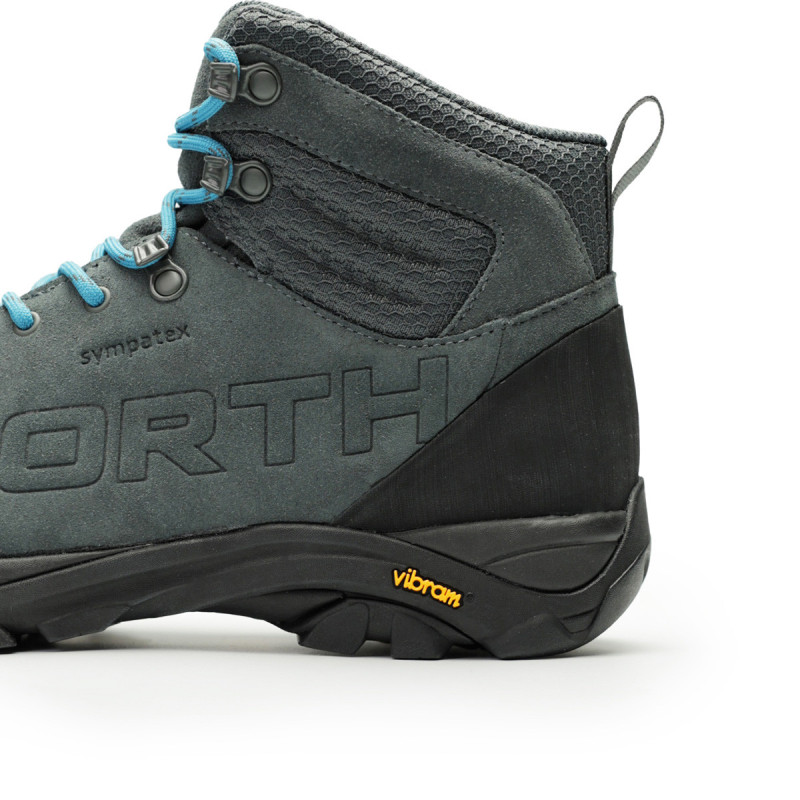 Zvršok je vyrobený zo 100 % prémiovej brúsenej kože, čo zabezpečuje odolnosť, pohodlie a zároveň štýlový, robustný vzhľad. Kľúčové komponenty zahŕňajú vložky Ortholite® pre dlhotrvajúce tlmenie a reguláciu vlhkosti a podrážku VIBRAM® XS Trek Evo pre excelentnú priľnavosť a rovnováhu na suchom aj mokrom povrchu. Medzipodrážka z EVA peny prispieva k nízkej hmotnosti a tlmeniu otrasov, zatiaľ čo prvky Sympatex® poskytujú vodotesné priedušné vlastnosti, čím sú topánky pripravené na daždivé počasie.