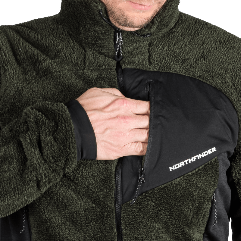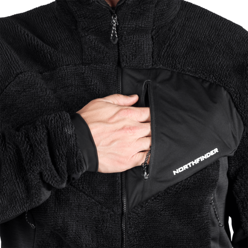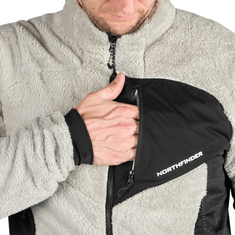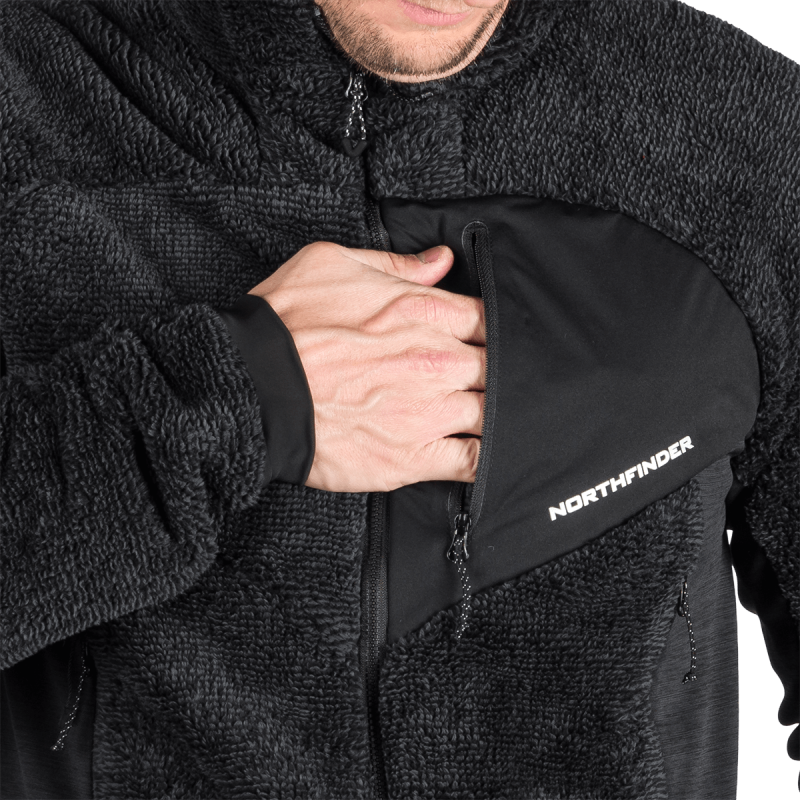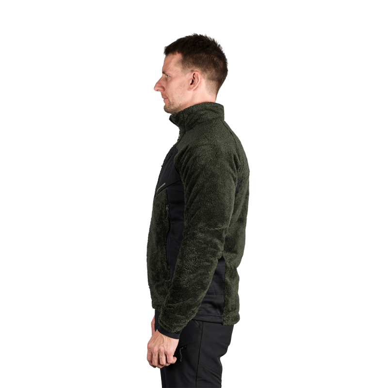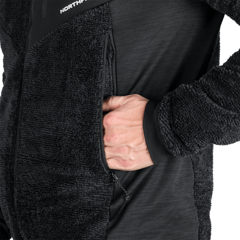 Sveter je vyrobený zo 100 % polyesteru a využíva pokročilé flísové technológie: melírovaný flís s úpravou proti žmolkovaniu a teplý sherpa flís. Tieto materiály sú starostlivo vybrané pre svoju výbornú tepelnú účinnosť a jemnosť, ako aj dlhodobú odolnosť a odraz voči opotrebeniu. Úprava proti žmolkovaniu predlžuje životnosť odevu a zachováva jeho upravený vzhľad aj po opakovanom použití.
