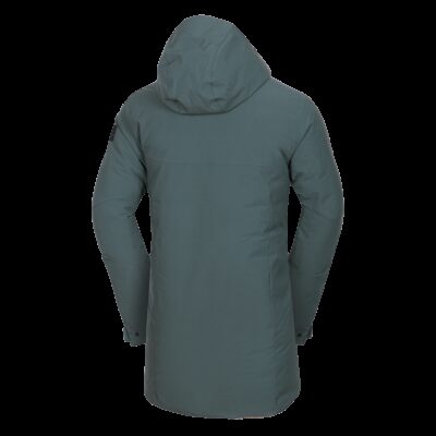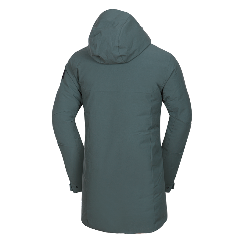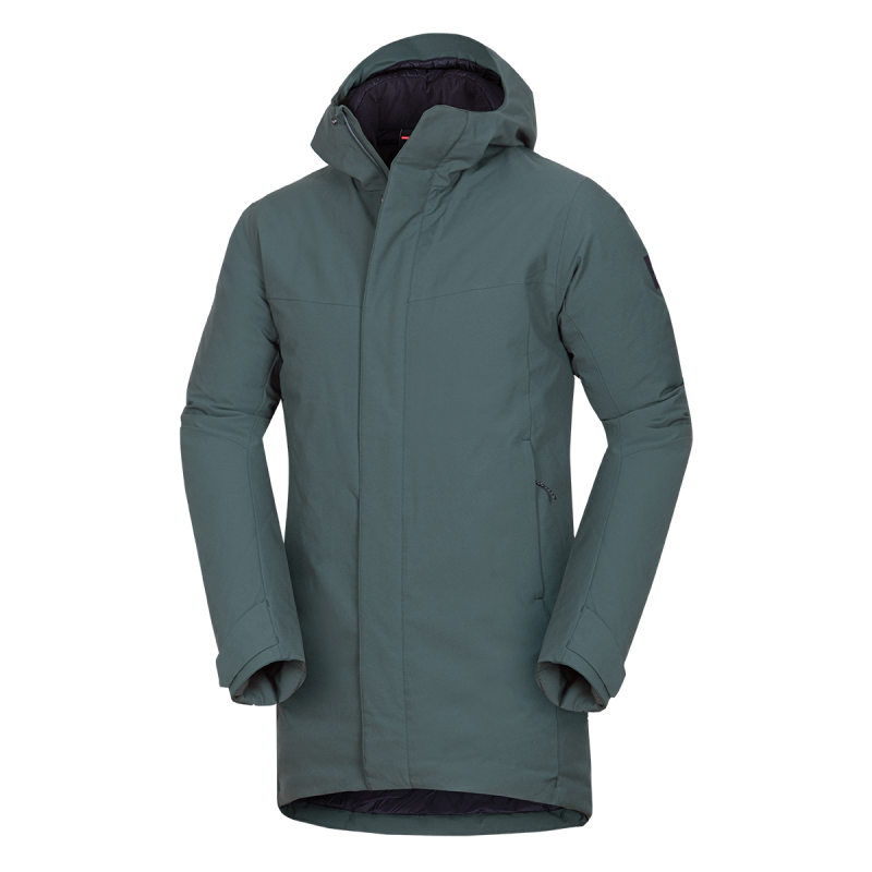 Medzi hlavné dizajnové prvky patrí pevná 3D kapucňa pre tvarovanú ochranu, predtvarované rukávy pre lepšiu pohyblivosť a nastaviteľné manžety pre individuálne pohodlie. Zipsy YKK® zabezpečujú spoľahlivé zapínanie a dlhodobú výdrž. Kabát využíva aj 3D syntetické vlákna napodobňujúce páperie, ktoré poskytujú vynikajúcu tepelnú účinnosť pri zachovaní nízkej hmotnosti a jednoduchej údržby.