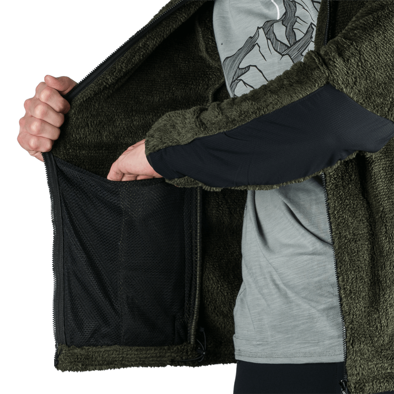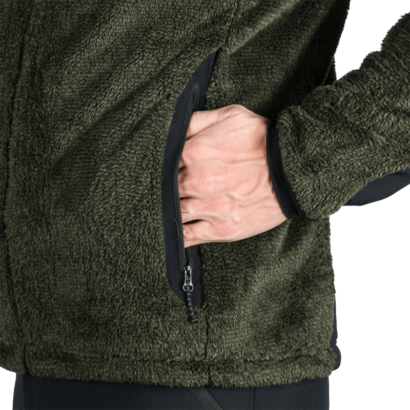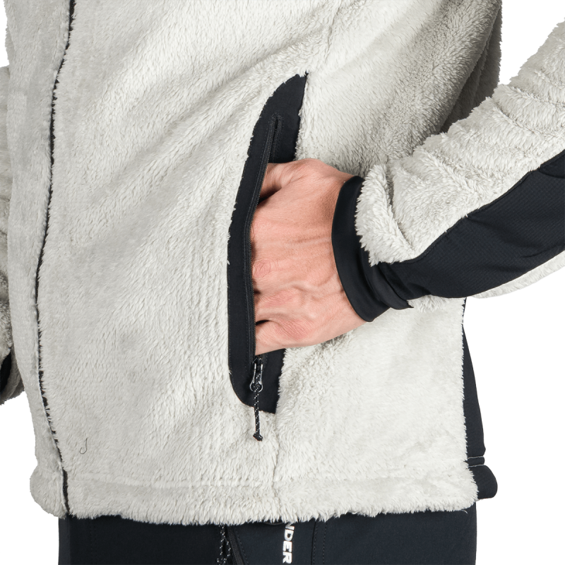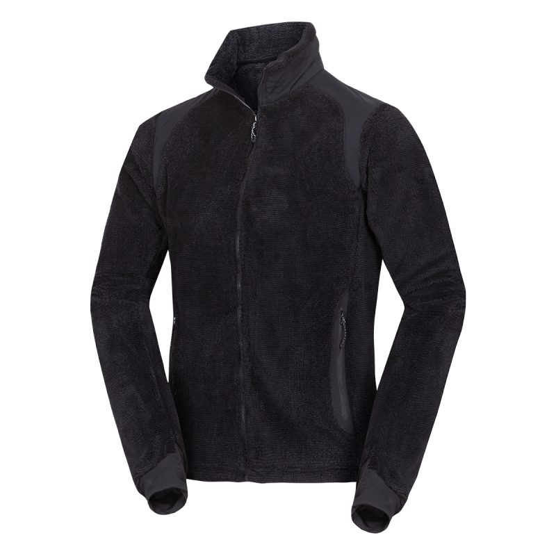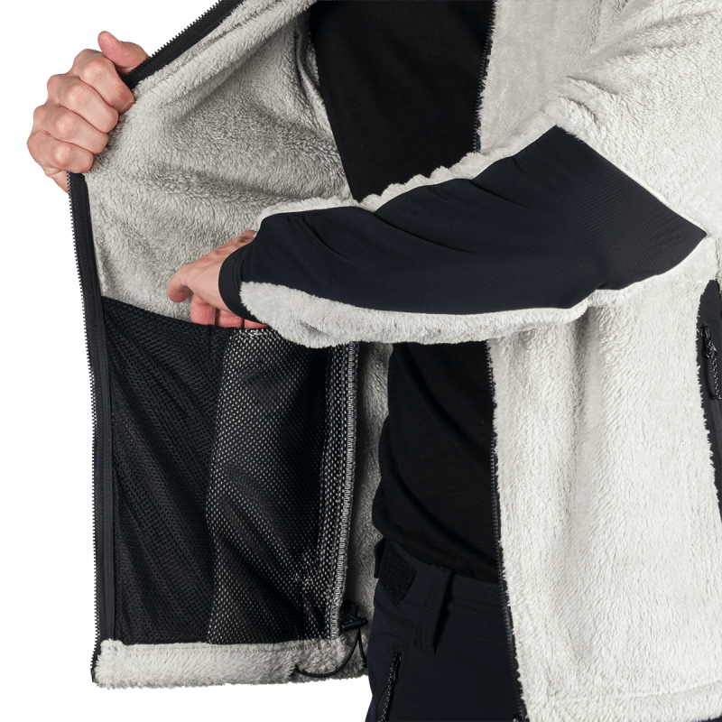 Z hľadiska funkčnosti má sveter klasický strih, ktorý zabezpečuje rovnováhu medzi voľnosťou pohybu a tepelnou izoláciou. Medzi kľúčové dizajnové prvky patria vystužené ramená pre odolnosť pod tlakom batohu, predtvarované rukávy s elastickými manžetami pre ergonomický pohyb a golier upravený pre lepšie udržanie tepla. Odev je doplnený prémiovými zipsami YKK® a nastaviteľným pásom, čo zaručuje bezpečné zapínanie a prispôsobenie sa meniacim podmienkam.